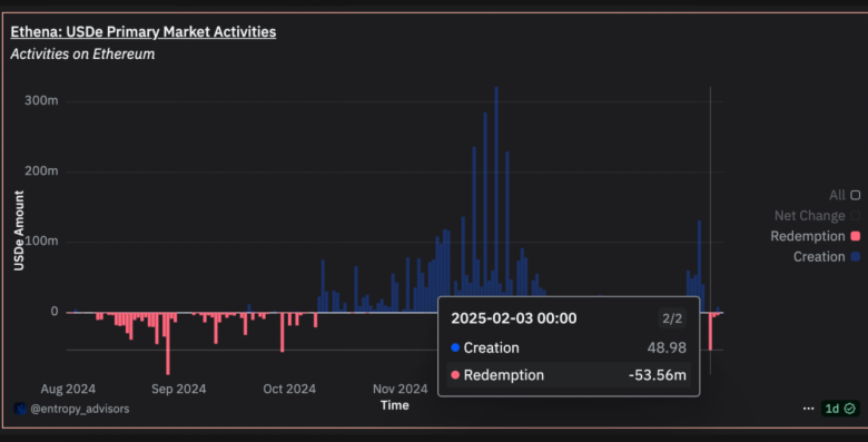 ● 尽管市场剧烈波动,USDe表现稳定,与法币稳定币走势一致。